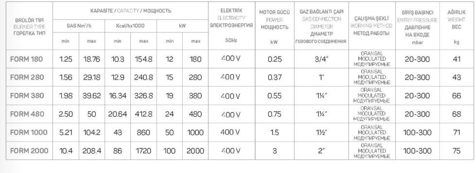 ÜRET FORM 1000 Proses (Kurutma) Brülörü (50 – 1000 kW/h)
