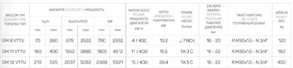 ÜRET ÜM 12 VTTU Üç Kademeli Fuel Oil Sıvı Yakıt Brülörü (210-525 kg/h)