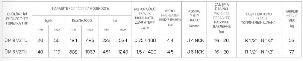 ÜRET ÜM 3 VZTU İki Kademeli Fuel Oil Sıvı Yakıt Brülörü (20-50 kg/h)