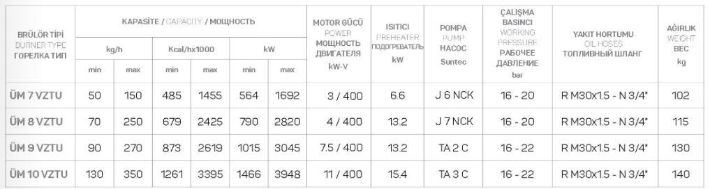 ÜRET ÜM 9 VZTU İki Kademeli Fuel Oil Sıvı Yakıt Brülörü (90-270 kg/h)