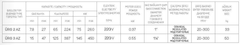 ÜRET ÜRG 3 AZ Oransal Gaz Brülörü (145-450 kW)