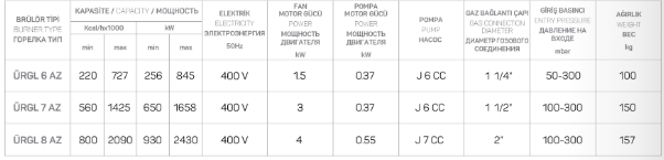 ÜRET ÜRG L 8 AZ Oransal Çift Yakıtlı Brülör (930 – 2430 k/W)